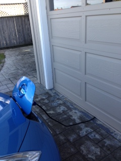 You can of course charge your car by plugging into a home outlet. We plug ours in overnight. (we plan to build a chargning station at our home, more on that in another blog post) Charging on a regular home outlet takes about 20 hours to go from zero to a full charge.