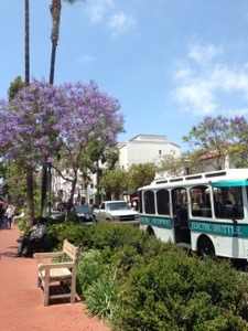 The palm- tree lined bike path is great, if crowded, and artists sell their wares along its path. We meandered along the path, then jumped into the ocean for a swim. After going back to the car to change at the restroom, we returned the bikes and walked downtown. After a little shopping (there are stores and cafes galore) and lunch, we hopped on the city’s all- electric shuttle bus for a ride back to the wharf, just a short walk from the car, which was fully charged and waiting.